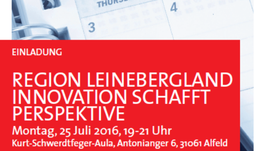 18. Juli 2016 Einladung zu: Region Leinebergland - Innovation schafft Perspektive Arbeit Kommunalpolitik Niedersachsen Wirtschaft